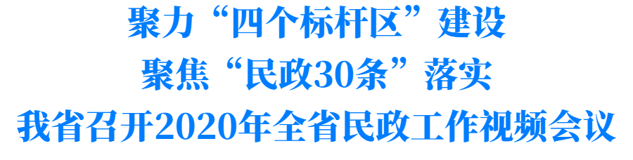 要坚持抓重点、补短板,强弱项、提质量,扎实推进2020年重点任务落地见效。要围绕坚决兜住脱贫攻坚之底、高水平全面建成小康社会,在打造精准保障标杆区上实干先行,为后扶贫时代精准救助提供浙江经验。要围绕建设“人人有责、人人尽责、人人享有”的社会治理共同体,在打造和谐自治标杆区上创新探路,着力将基层自治制度优势更好转化为治理效能。要围绕积极应对人口老龄化,在打造幸福颐养标杆区上再接再厉,建立健全居家社区机构相协调、医养康养相结合的养老服务体系。要围绕着力解决发展性民生问题,在打造暖心服务标杆区方面久久为功,积极推进基本社会服务数字化、均等化、一体化、现代化。
